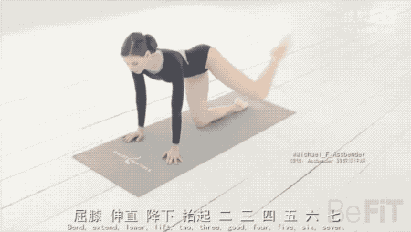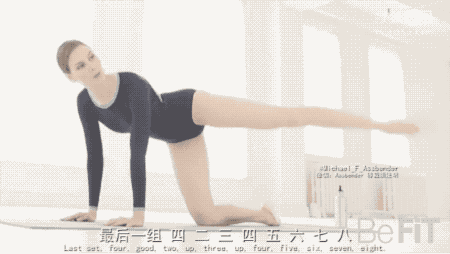▲Step6:腿部呈90度弯曲,在向外侧踢的过程中打开,一次做4个8拍,一共做三组。