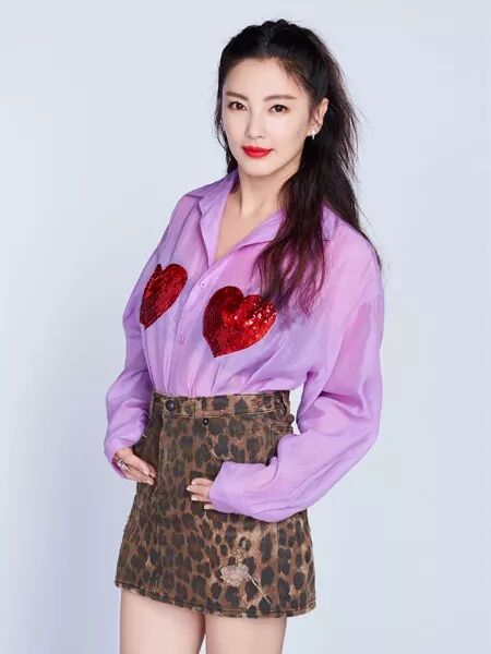 ▲紫红色的透视衬衫搭配明艳的爱心凸显了张雨绮凹凸有致的身材,豹纹的A字裙更是把御姐气质发挥得淋漓尽致,透视衬衫非常考验身材,平一点就毫无韵味,多一分则略显庸俗,张雨绮显然将两者平衡得很好~