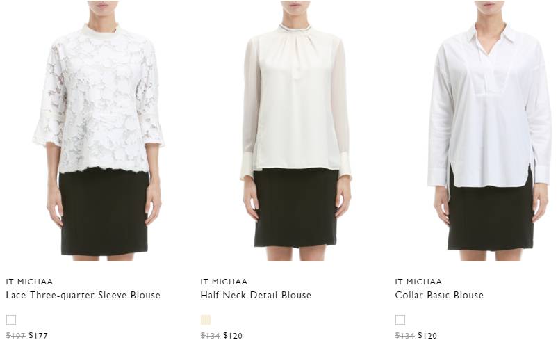 IT MICHAA可以说就是盯着OL来设计衣服的,放眼过去全是保守的通勤装,价格也很“白领”,几百到上千都有~