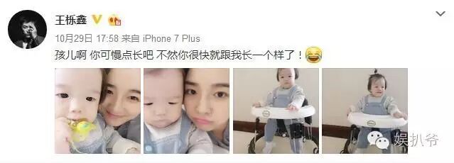 昨天王栎鑫在微博晒了下他的娃,并“吐槽”道:孩儿啊,你可慢点长吧,不然你很快就和我一个样了