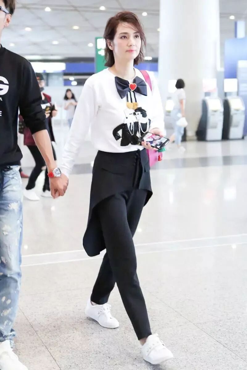 黑色的裙子穿起来也还挺好看的呢。只是素颜的脸蛋看着稍显憔悴了一些,皮肤看起来还挺松弛的。这样看着就非常的显老气了啊。还好身材一直都跟以前一样没有变样呢。
