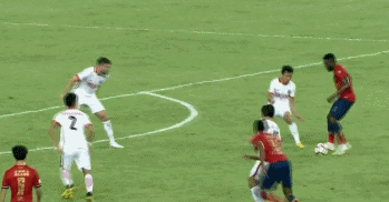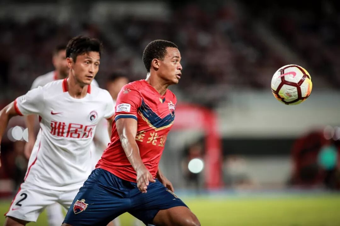 第30分钟,徐洋右侧开出角球,普雷西亚多在两名防守队员夹防中高高跃起头球攻门,皮球弹地后飞进球门,2比2。