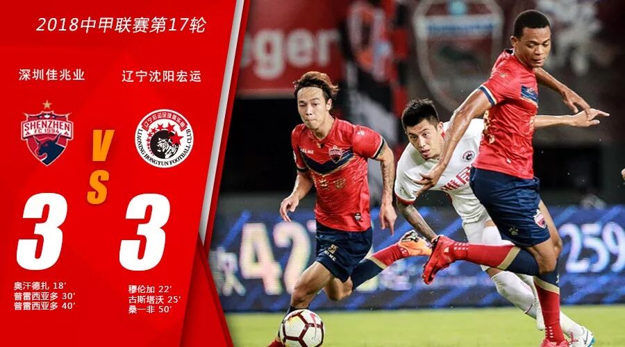 中甲联赛第17轮,深足主场迎战辽宁沈阳宏运,双方上演了一场进球大战。上半场奥汗德扎的射门经过折射后得分,但是深足连丢两球,普雷西亚多梅开二度帮助球队再次反超比分。下半场开场不久,辽宁再次扳平比分,双方3比3战平。
