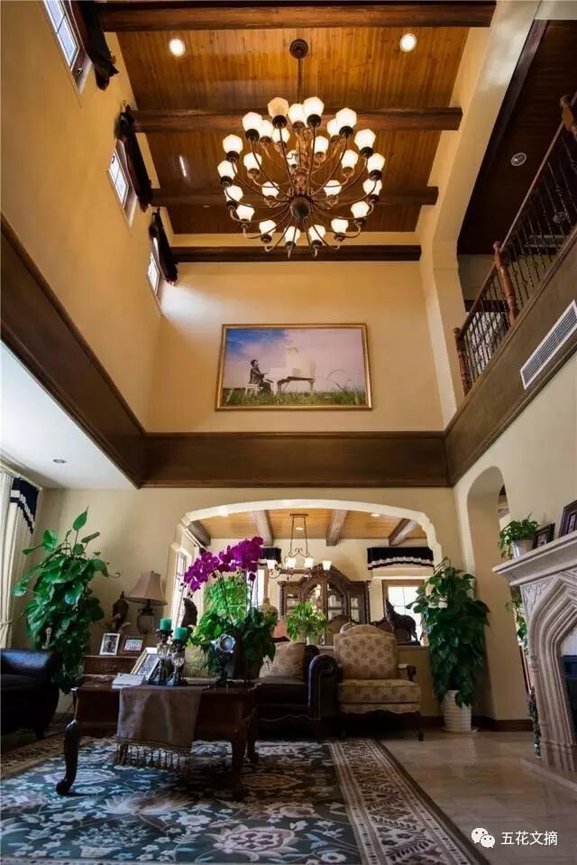 钢琴家郎朗的豪宅在青岛芭东小镇内,也是独栋别墅,院里院外种满桃花,灵动浪漫,果然是艺术家的风格啊,室内装修则是欧式复古,唯一不变的,还是到处都流淌着艺术的元素吧!