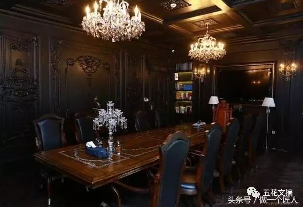 整体风格奢华复古,仔细看每个细节都在炫富,一个水晶吊灯就要40万,书桌地毯价值都超100万。