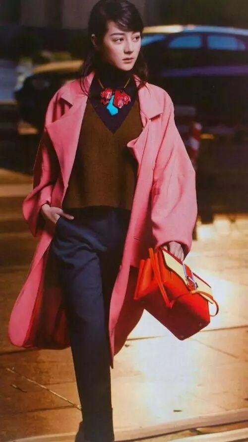 粉色的风衣外套搭配阔腿裤,知性气质范,粉色中透着小女人的可爱性感。