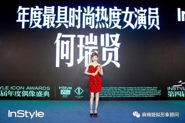 何瑞贤的时尚度,是得到了娱乐圈的高度评价的,看看下图,何瑞贤在刚刚结束的时尚大典上,就获得了2022年度最具时尚热度女演员的奖项,看看领奖时候何瑞贤的造型,发型妆容服饰都比较适合,整体造型是不是显得她既漂亮又女人还很时尚与性感?
