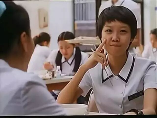 第一次露脸应该是在韩国恐怖片《女高怪谈2:交换日记》里,长相嘛,就是衬托校花有多美丽的那种女同学
