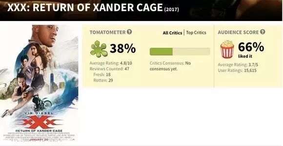 《极限特工》于1月20日在北美上映,首周票房2000W美刀,表现平平。