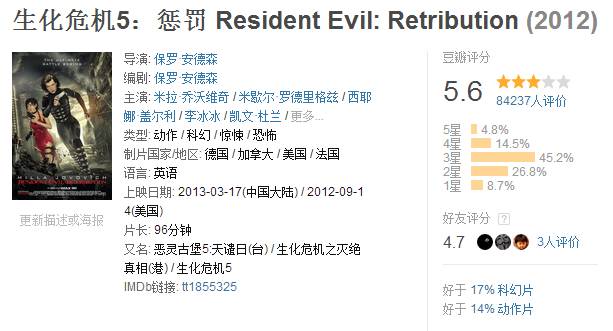 而且,《生化危机》系列主演队伍还不稳定,每一部总爱换一拨人,比如第五部的李冰冰和第四部的米帅就莫名其妙下线了。