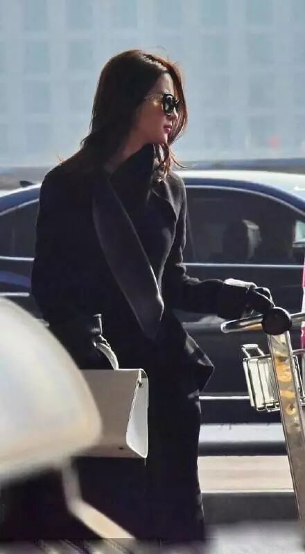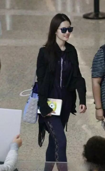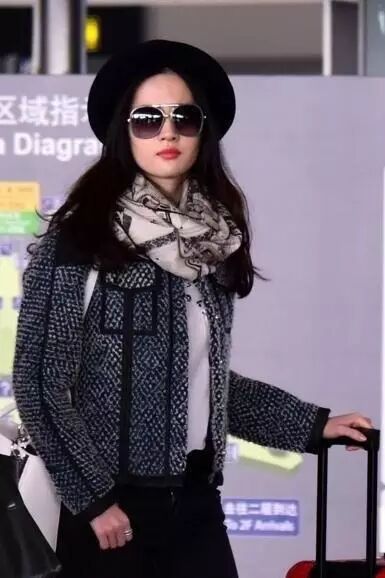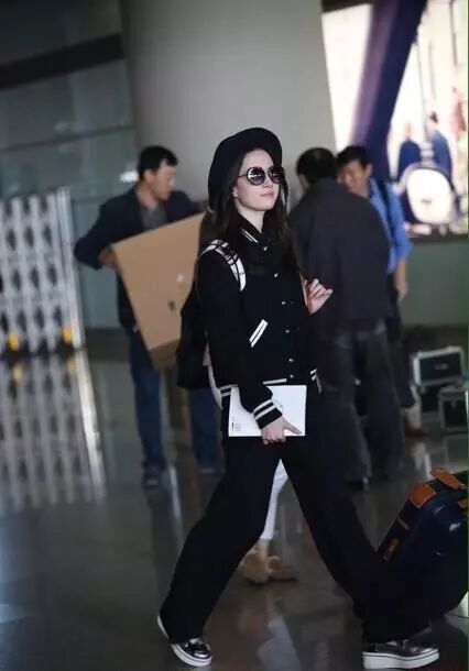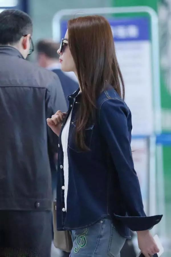 刘亦菲身穿一套牛仔装抵达香港,简单时髦青春气息十足。