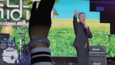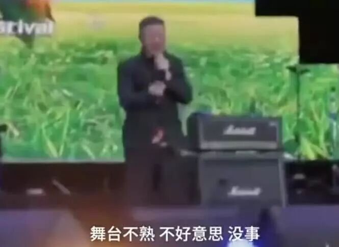 因为感冒身体不适,他觉得自己演唱的歌曲《等待》最后一句收尾发挥失常,于是举起了小手手: