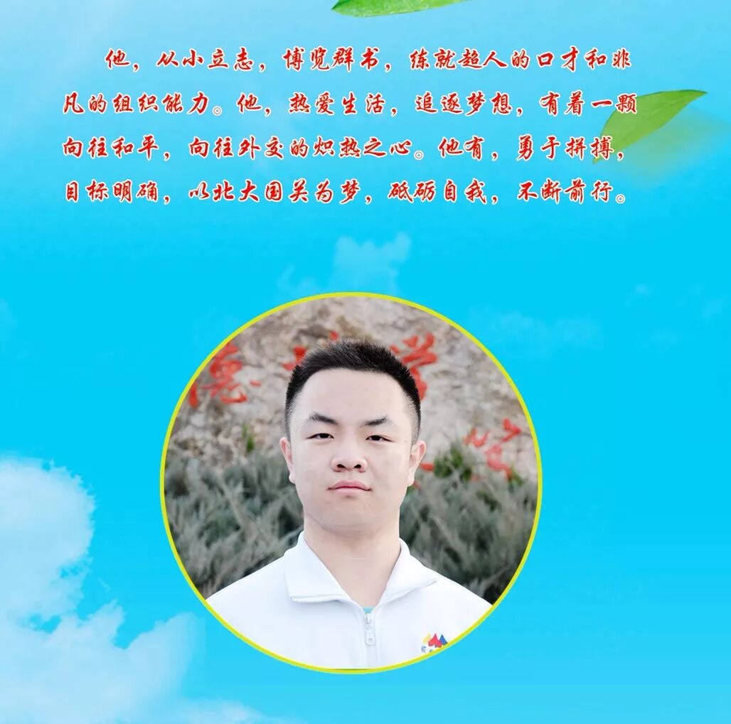 他把自己的短期目标定在了北京大学国关学院。为此,他努力地加强文化课学习。在高一、高二成绩始终位列年级前列。参加市级数学竞赛,获二等奖,参加全国中学生数学联赛,获得三等奖。为提高语言文字能力,他参加“书香燕京”征文活动荣获市级一等奖。今年8月,经二中推举参加北京大学优秀中学生暑期学堂,站在“国关”大楼前,他更加坚定了来到这里,从这里起航走向外交事业的决心。