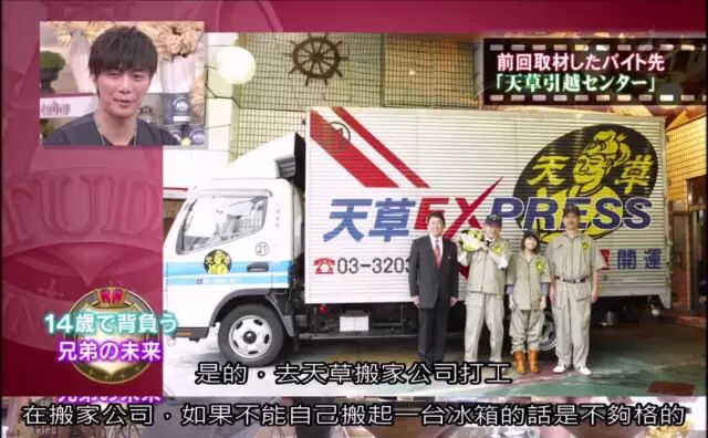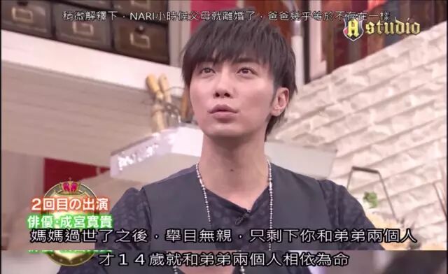 前年引退的演员成宫宽贵,母亲去世的时候只有14岁,与上小学的弟弟相依为命的他不得不去搬家公司打工。只是初中一年级的年纪,就需要能够搬起一整个冰箱。没有学历的他一直在考虑如何能够赚得更多,以维持现在的生活、支持弟弟的学业,偶然间得到了试镜的机会,得以进入演艺圈。