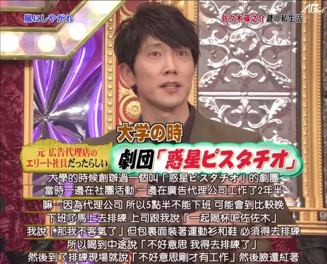 佐佐木藏之介曾在剧团的时候兼顾着广告代理公司的正式工作。进入广告代理公司原本是为了老家的酒厂去学习销售,想在登上大舞台之后再回去继承酒厂,结果酒厂被弟弟继承了,自己就成了演员。