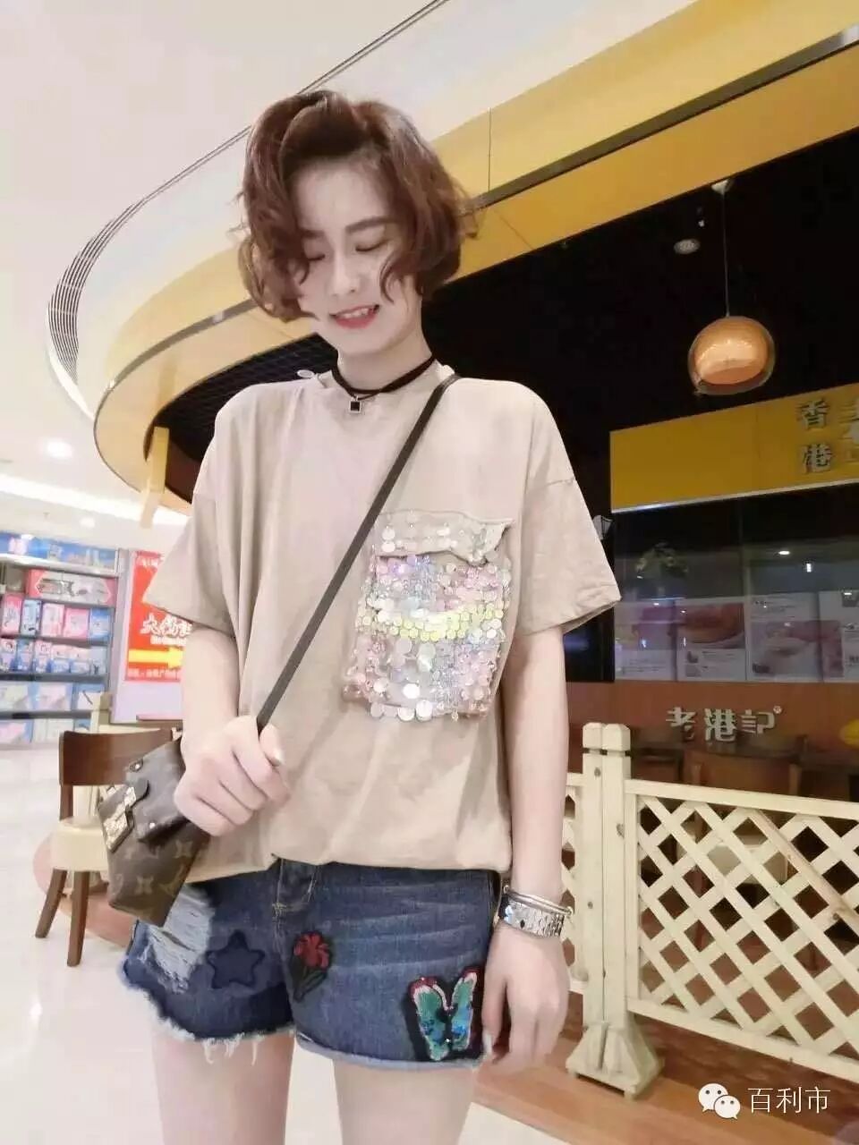 圆领短袖镶亮片T恤,不止吸汗透气,且更显俏皮活力。