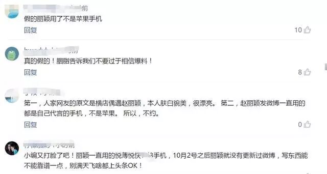 难道是因为照片不好看所以发怒?但是呢!机智的网友一眼看穿,直呼这是假的,只因为赵丽颖不用苹果手机,而是用其代言的手机。