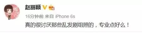 今天下午赵丽颖在微博怒斥:“真的很讨厌那些乱发剧照的,专业点好么!”,随后赵丽颖删除了微博。