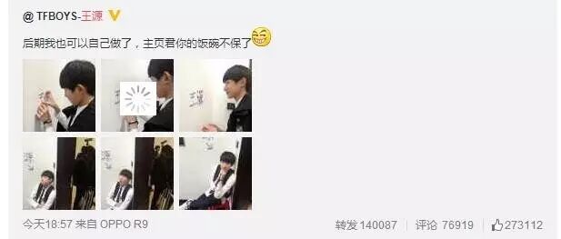 王源更新微博:后期我也可以自己做了,主页君你的饭碗不保了[阴险]
