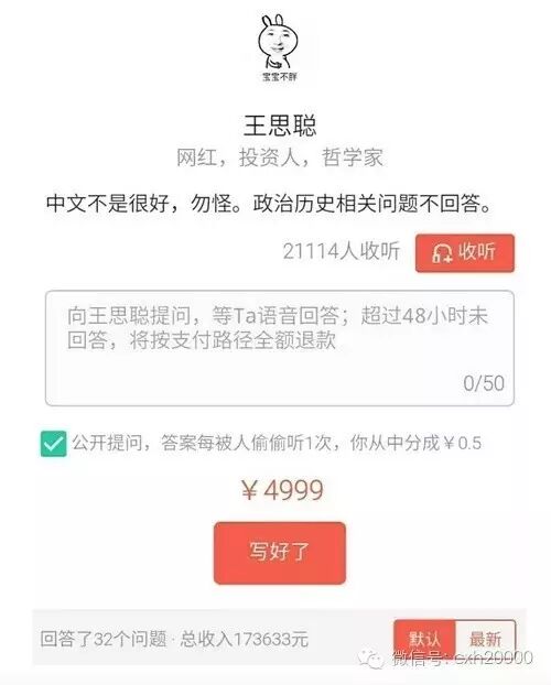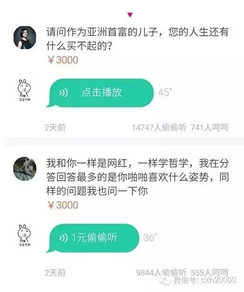 1. 请问作为亚洲首富的儿子,您的人生还有什么买不起?(14527 人付费收听。)