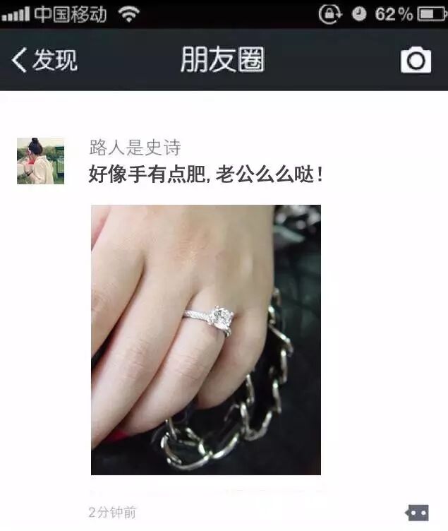 ▶潜台词:老公送的,钻石大吧,快来夸我!