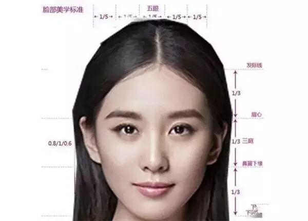 刘诗诗的五官是公认没硬伤的,敢叫板无硬伤,五官首先要大致符合美学标准,三庭五眼。如下图: