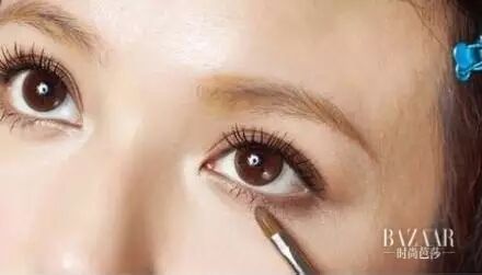 Step3:眼头留白,用咖啡色眼影从瞳孔下方描绘到眼尾。