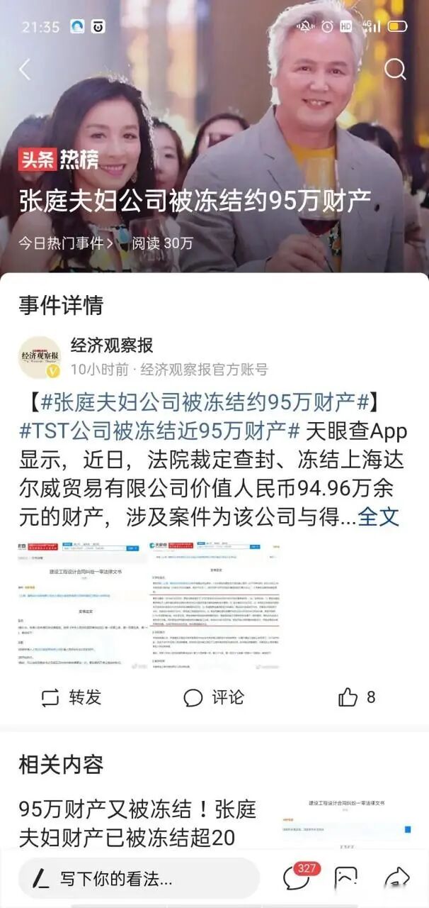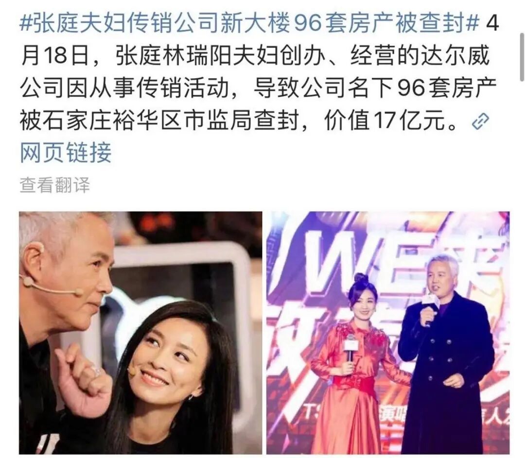 除了名誉受损,张庭夫妇名下的房产也被查,同时资产冻结和天价罚款等惩罚也随之而来。