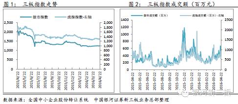4月27日,挂牌公司总数达6,935家。其中协议转让企业5,461家,做市转让企业1,474家。总股本4,020.93亿股,其中无限售股本1,421.05亿股。当日成交股票1,084只,成交股份13,861.94万股,成交金额74,710.39万元。其中协议转让方式219只,成交股份5,526.30万股,交易金额24,094.32万元;做市转让方式865只,成交股份8,335.64万股,交易金额50,616.07万元。