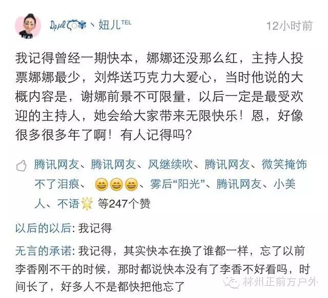 我记得曾经有一期《快乐大本营》,娜娜还没那么红,主持人投票娜娜最少,刘烨送巧克力大爱心,当时他说的大概内容是,谢娜前景不可限量,以后一定是最受欢迎的主持人,她会给大家带来无限的欢乐,恩,好像很多年了啊,有人记得吗?