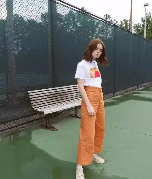 也可以搭配小白鞋,休闲一点。穿阔腿裤需要注意的是,上半身要搭配修身或者紧身的衣服,按照上紧下松的原则。