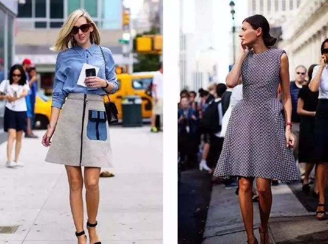 首先是面料要挺括,越是挺括,越可以用裙子的剪裁掩饰臀部的宽度;其次是长度要盖过粗大腿,避免大腿的粗壮加重了横向视觉。