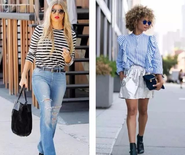 竖条纹衬衫同样适合上半身胖的仙女,视觉上瘦几斤全靠它,V领的剪裁还显脸瘦。