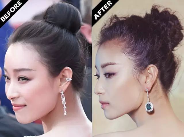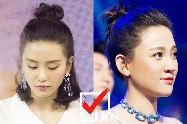 其实你们看一下,下面的对比图就能感觉到,丸子头感觉很厚重,花瓣头不仅能弱化丸子的整体坨状,还能让发型倍显精致,一举两得!