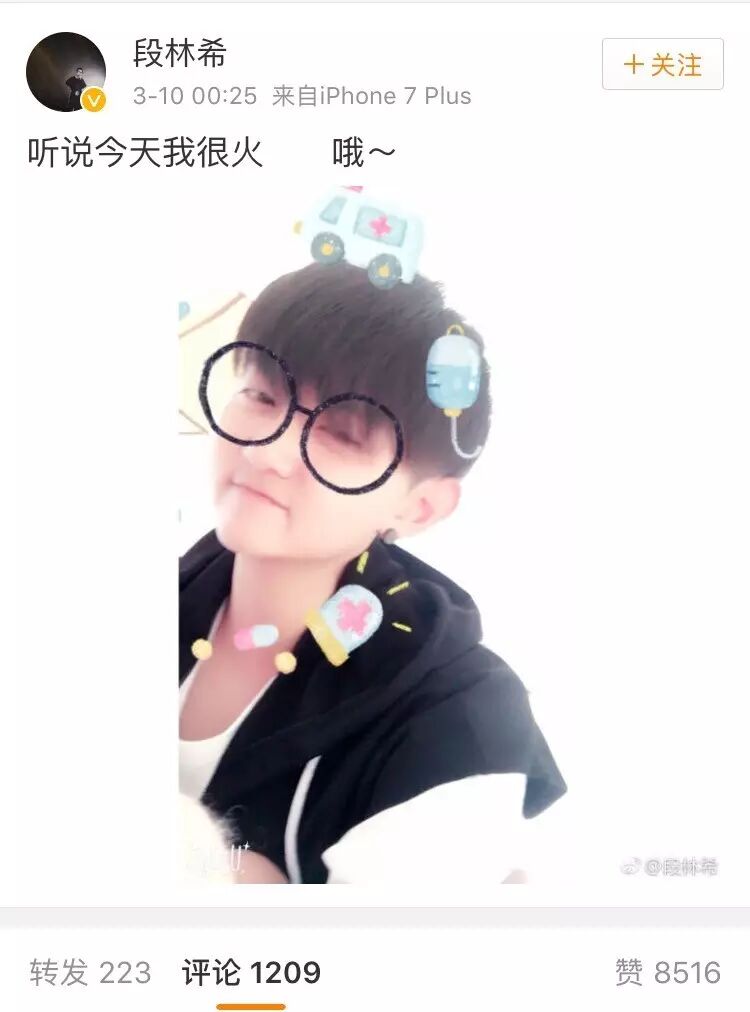 段林希这组风格古怪的造型一出,顿时上了热门。然后她还在个人微博中表现除了一些复杂的小情绪——