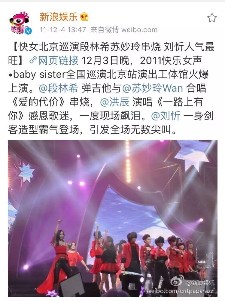 最近一次段林希的公开亮相,是在去年2011快女的五周年演唱会上。