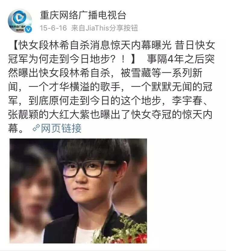可经过媒体的放大和传播,被传成段林希本人自杀。这也让段林希的粉丝倍感愤怒要求节目组道歉。