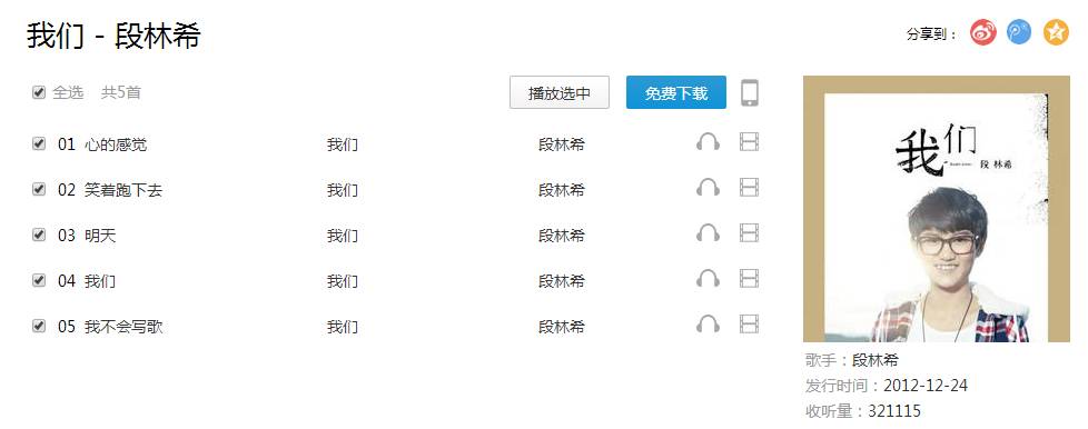 然而更尴尬的是,刘忻和洪辰两人早已在段林希之前发了专辑。刘忻的歌曲数还是三人中最多的六首。