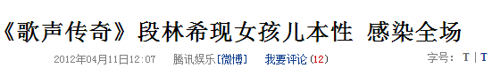 该节目将选秀失败自杀的女孩许阳丽与段林希夺冠联系在一起,原因是许阳丽去世前和爸妈说:“段林希唱得还没我一半好,为什么可以夺冠军”。