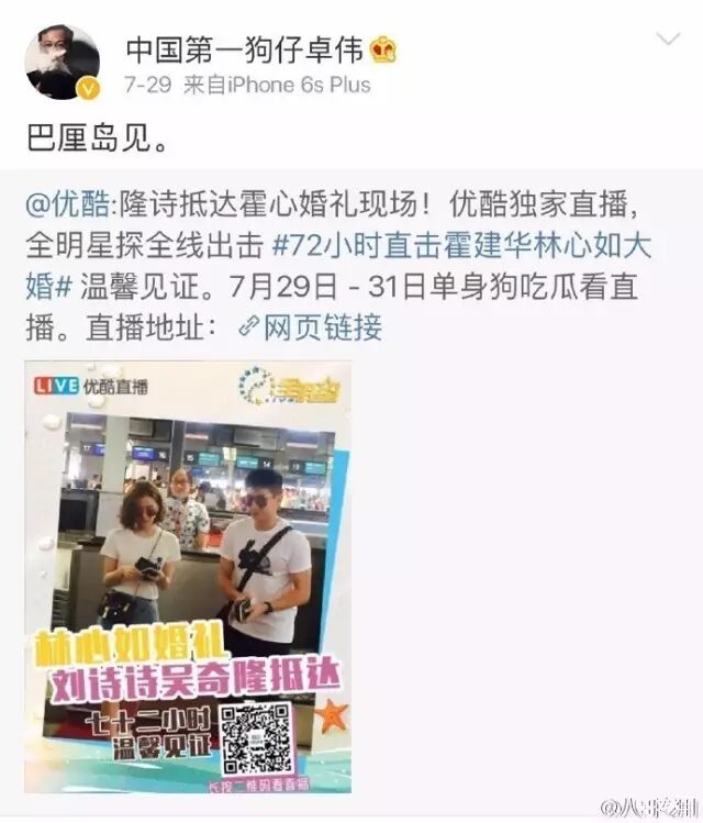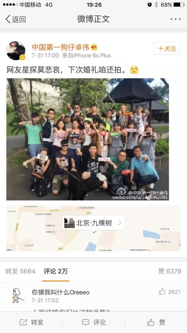 事情的起源来自号称中国狗仔第一人卓伟的一条微博!