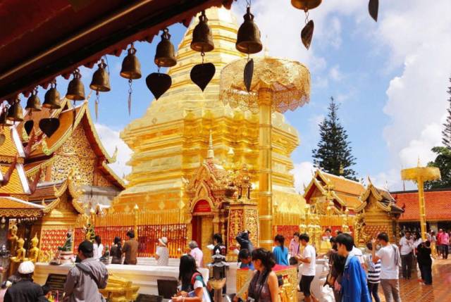 寺内金碧辉煌,香火鼎盛,寺庙里埋有佛主的舍利子,是虔诚佛教信徒向往朝拜的地方。随后也可在寺庙后的观望台居高临下远眺清迈市全景。