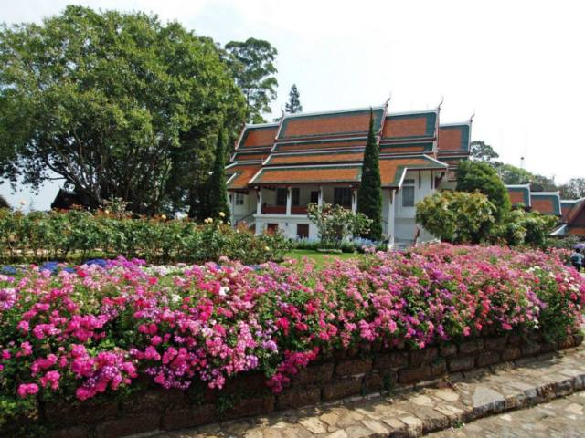 于1962年完工的蒲屏皇宫是泰国皇室的避暑行宫,皇宫花园向游人开放。步入花园,放眼远望,可以看到格调雅致、装饰着橙色屋顶的皇家宫殿。园中最吸引人的是各色奇花异草,尤其是340多种玫瑰花姹紫嫣红,很多都是举世罕见的稀有品种。园中漫步,闻花香听鸟语,清池倒映着周围的青山,令人心旷神怡。