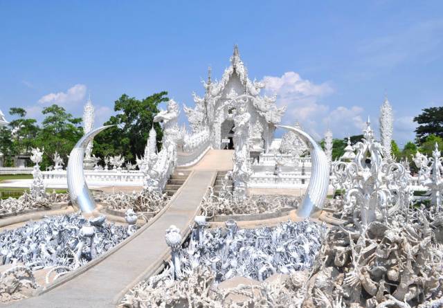 在清迈众多的寺庙中,白庙、黑庙尤为独特,这两座庙并非传统的佛教寺庙,而是泰国两位著名艺术家创作的“艺术品”。