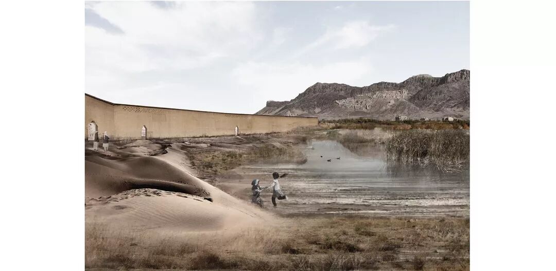 Based on the physics of dust storms, and with the threefold objective of ecological improvement, cultural reconnection, and a diplomatic gesture, this thesis proposes implementing an armature in the landscape: a series of strategically located walls that takes advantage of natural forces.
