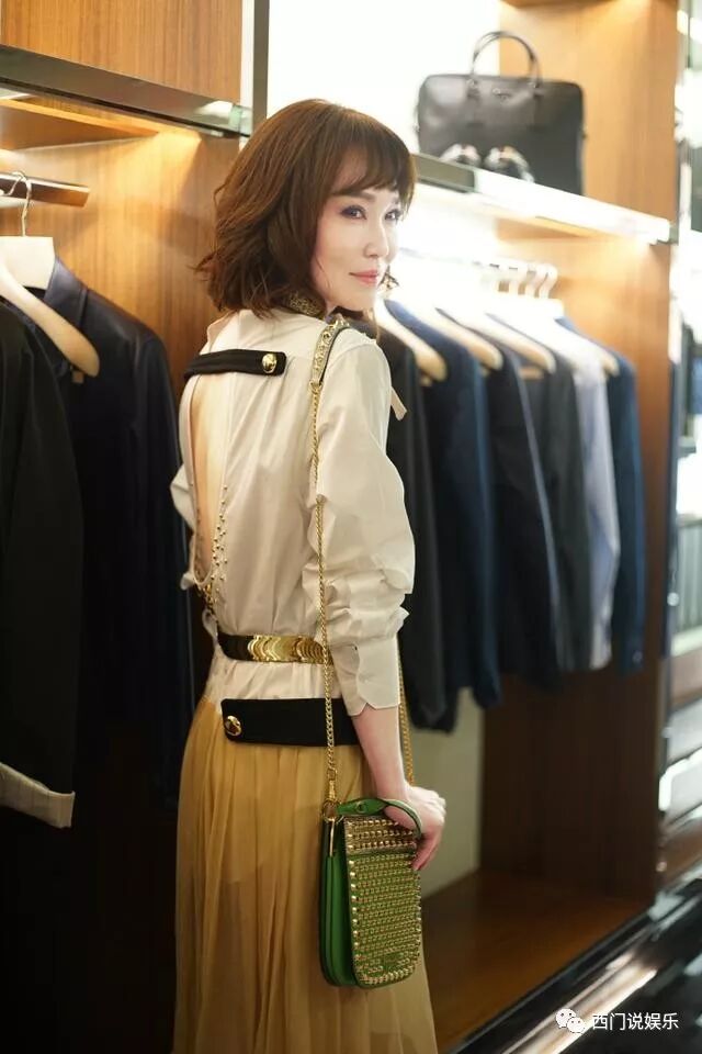 好看的不止是不老的容颜,还有她与众不同的气质!素色衬衣搭配黄色百褶裙,绿色铆钉复古包,纸片身材好有掌控力。