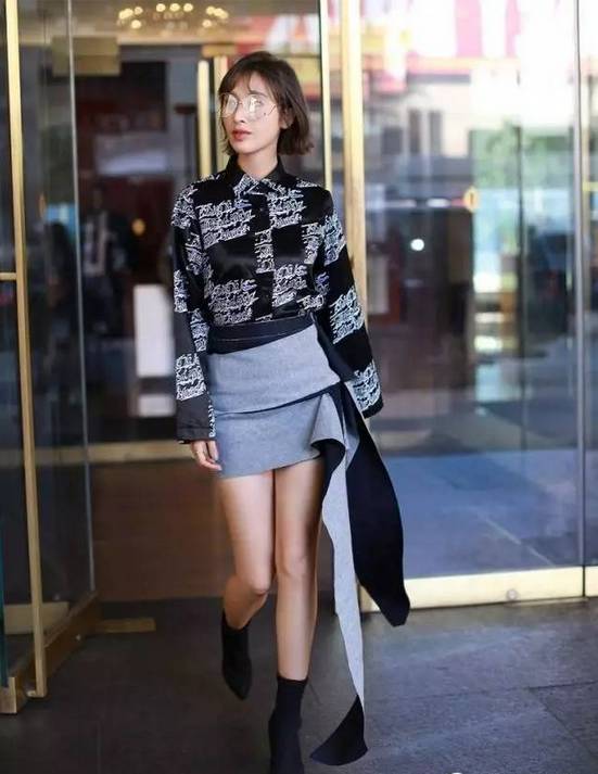 其实张俪也是超级会搭配的,这身不规则的超短裙正好把她自己的身材优势全都展现出来了,一双大长腿很吸睛的