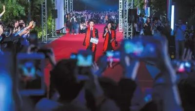 走红毯开始后,北电的校园里尖叫声和欢呼声此起彼伏。虽然主题是校庆,但这么多明星同时出现,对于现场的粉丝们来说也是一大福利。记者注意到,不少北电的学子早早守候在红毯两侧,向老师和师兄师姐们致敬,甚至还有人早早准备了纸笔,让偶像们在走红毯那么短的间隙内为自己签名。