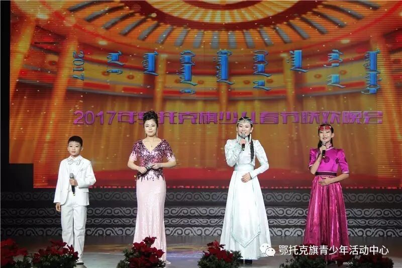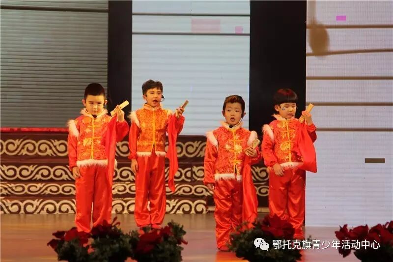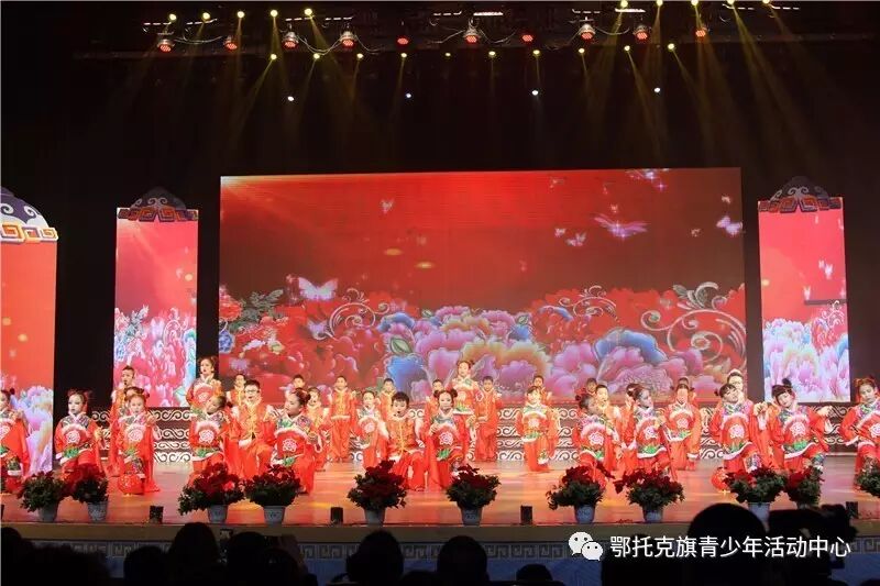 歌舞说唱奏年韵,少儿欢喜贺新春!在全体老师、小朋友们的辛勤努力下,在家长朋友的鼎力协助以及所有工作人员的密切配合下,由青少年活动中心主办的2017年鄂托克旗少儿春节联欢晚会于1月17日晚在乌兰镇新区影剧院精彩上演。整场晚会分为四个篇章:吉祥宝贝、幸福宝贝、琴韵宝贝和炫舞宝贝,有近300多名兴趣班学员参与了演出活动,多达500名家长和群众观看了演出节目,规模之大,人数之多,表演曲目丰富,艺术形式多样,节目精彩纷呈!