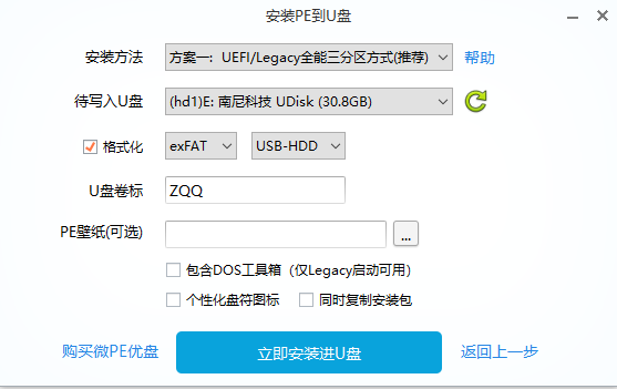 8. 点击“立即安装进U盘”(U盘卷标显示的名称为自己插入U盘的名称)。