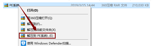 5. 鼠标右击“PE系统”压缩包,选择“解压到PE系统”。